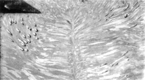 澆鑄時(shí)由模底和模壁產(chǎn)生的氣體來不及逸出而沿結(jié)晶方向形成氣孔