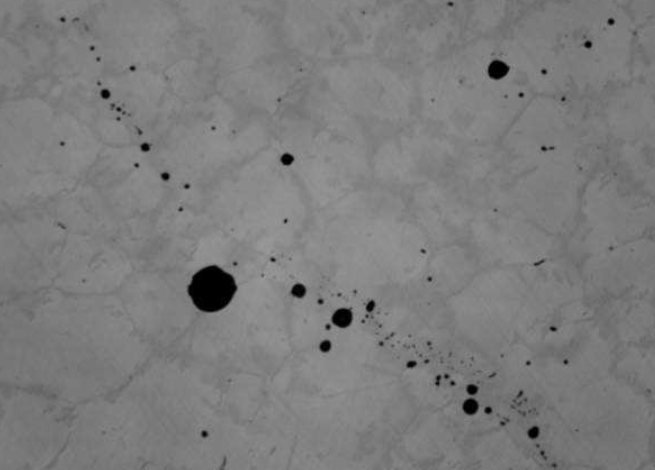 其分類和特征與鑄造制品夾雜基本一致。加工制品夾雜一般呈顆粒狀、長(zhǎng)條狀沿加工方向分布,有一定形態(tài)和顏色,界面明顯,不用侵蝕即可在金相顯微鏡下發(fā)現(xiàn)。