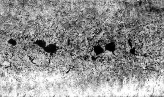 麻面呈局部或連續(xù)成片分布,個(gè)別的稱為麻點(diǎn),嚴(yán)重的稱為麻坑。晶粒粗大引起的麻面俗稱桔皮。