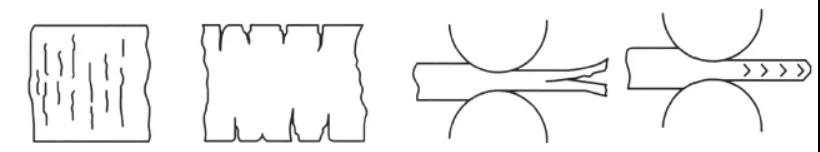 圖10為軋制時(shí)出現(xiàn)的各種裂紋示意圖:
